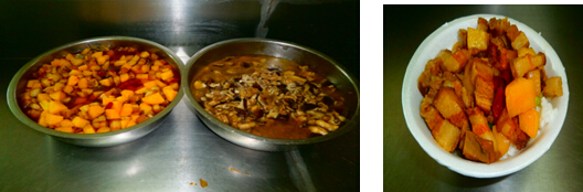 二)、木桶饭的8元、10元、12元的单一快餐模式;肉量按每人每餐400—500克,米饭自由吃,所用米为东北珍珠米;